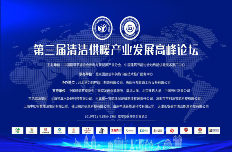 2019年12月,天津长安盛世清洁能源科技有限公司受邀参加由中国建筑节能协会热电与新能源产业分会、中国建筑节能协会地热能供暖技术推广中心联合举办的第三届清洁供暖产业发展高峰论坛暨节能减排新技术推广展示会。